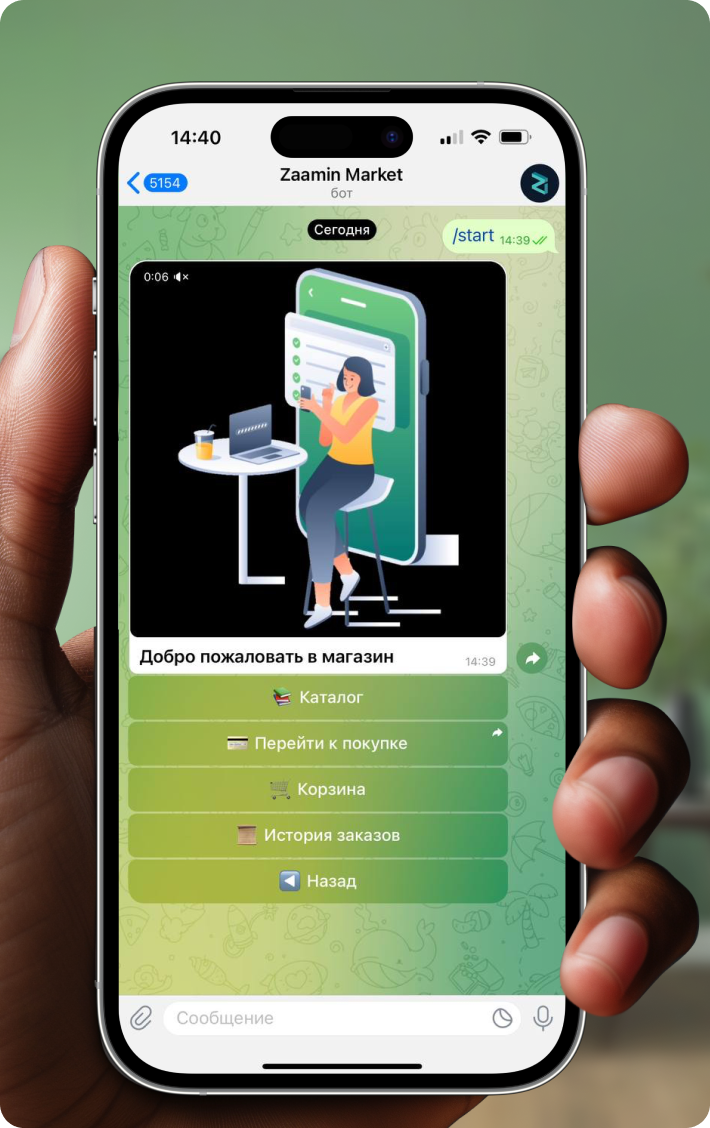Чтобы воспользоваться опцией покупок через Telegram- бот, отправьте свои контактные данные, включая номер телефона, имя, адрес магазина по указанному ниже адресу. И наши менеджеры отправят вам ссылку на телеграм бот.